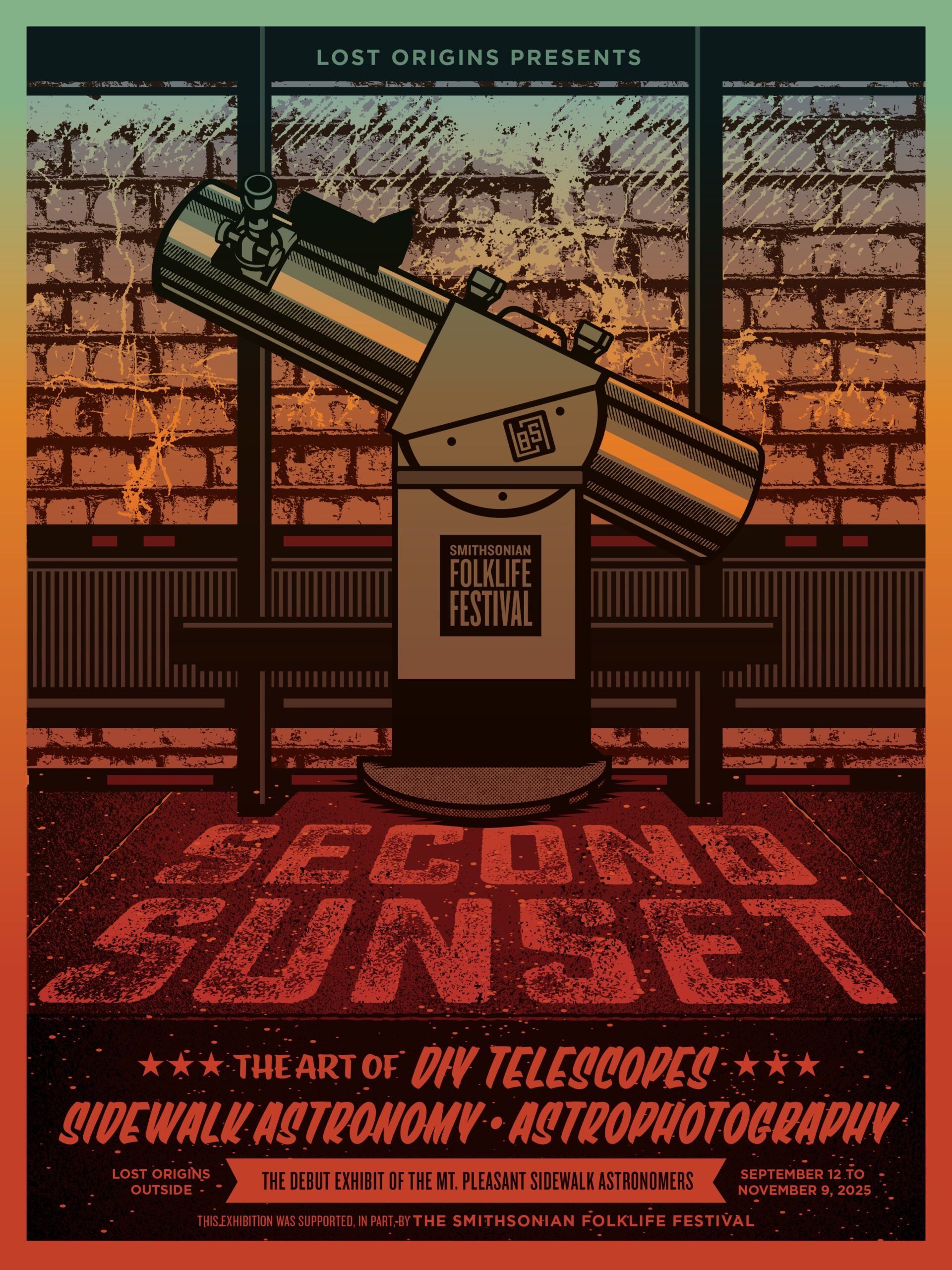 Lost Origins is thrilled to present “Second Sunset,” an exhibit celebrating sidewalk astronomy, the wonders of space, and the DIY telescope community.